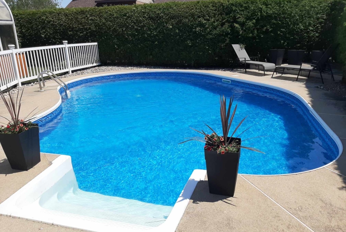 À l’extérieur, la cour intime est un véritable havre de paix. Profitez des journées ensoleillées autour de la piscine creusée et chauffée, dans un environnement conçu pour l’intimité et la détente.