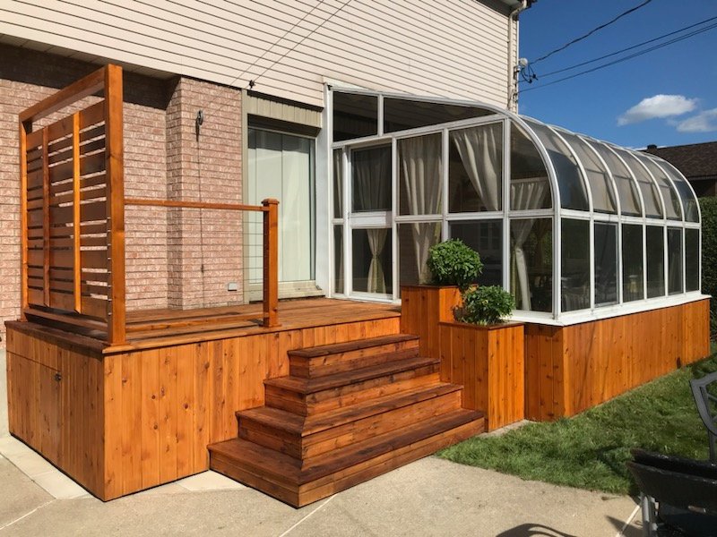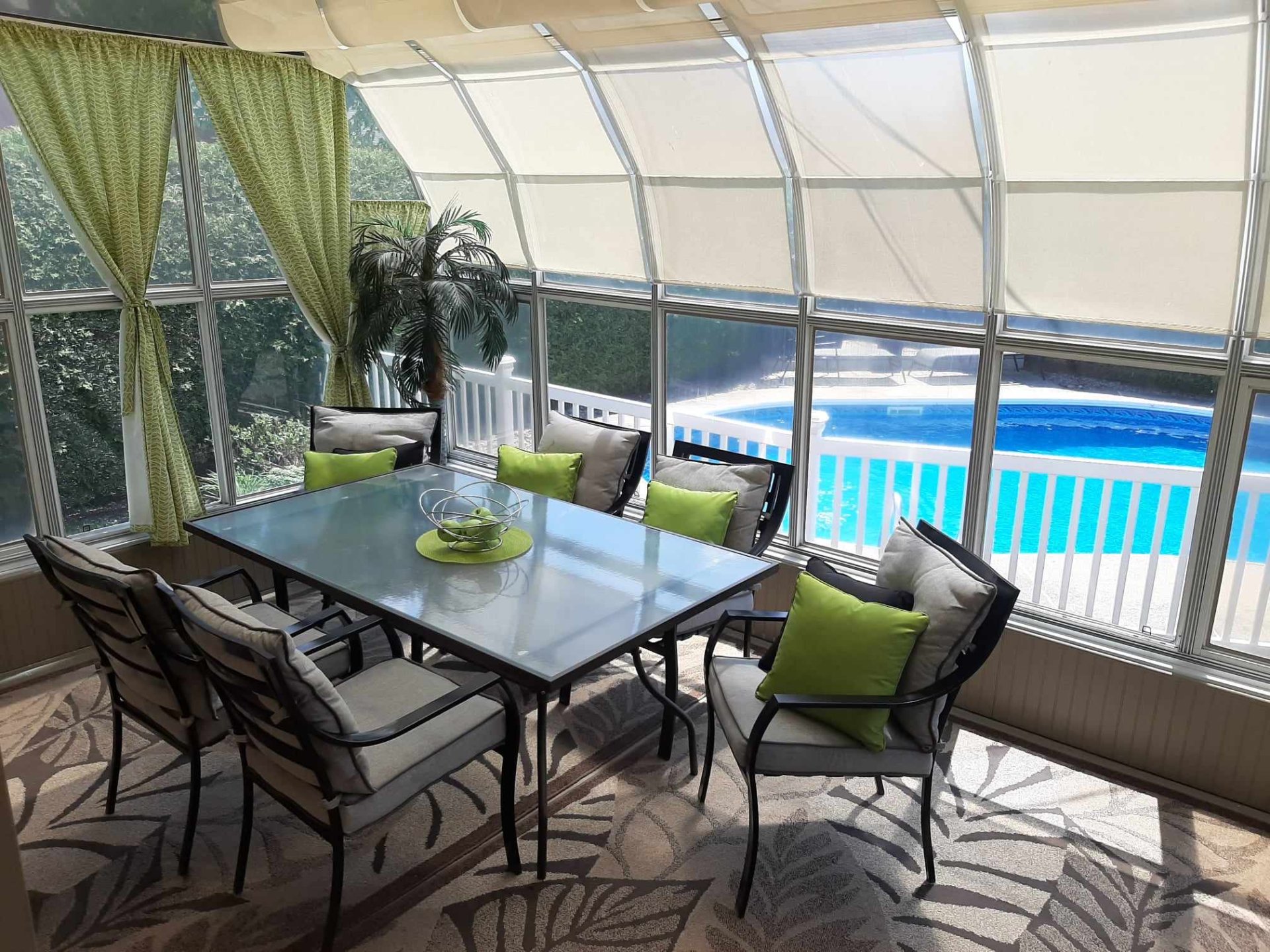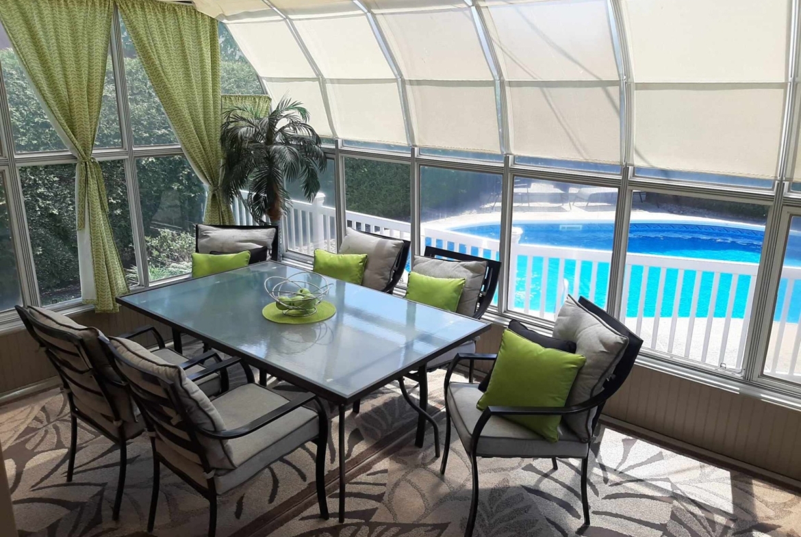 Le solarium offre un espace lumineux et apaisant, idéal pour profiter de la vue sur la cour, la piscine tout en bénéficiant de la chaleur naturelle du soleil, créant un coin de détente parfait pour les moments de lecture ou de relaxation.